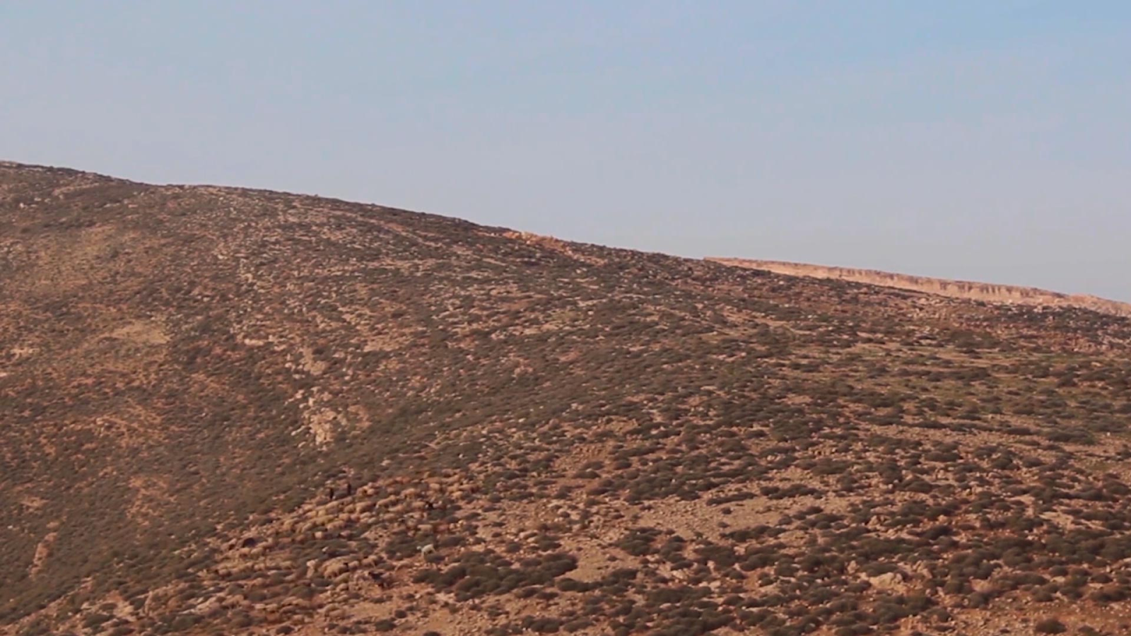 Halabi’s use of rumours aligns with Kuletz for piercing the veil of secrecy shrouding the zones of sacrifice, though without visualizing or mapping the corresponding Palestinian regions explicitly. On the surface level, this approach contradicts efforts by artists such as Samia Henni, for whom extensive visualization plays a crucial role in bringing together sources from classified institutional archives, providing evidence of colonial toxicity (Mavrokordopoulou 121). Yet, Halabi’s work remains deeply attuned to the fraught context of classified and erased knowledge about the Palestinian environment, which can be seen as its central focus.[15] Despite an abundance of landscape shots, dream recitations, and dialogues, the film deliberately avoids offering a singular, coherent storyline, leaving its message fragmented and unresolved to the very end. Rather than providing numbers or statistics, it operates on the level of rumour, spinning a yarn out of speculative imaginaries. This disorienting experience—marked by the absence of crystalized truths, clear verdicts, or accountability—confronts the dark reality of living under sociopolitical conditions of environmental colonialism, where historic landscapes are constantly controlled, manipulated, and destroyed to actively erase memories. These conditions are ever present in the West Bank, where alongside a deep mistrust of their innate perceptions of the world around them, Palestinians must grapple with a relentless awareness that the very natural elements of their homeland are being weaponized against them (Shalhoub-Kevorkian 7). Leaning into the ungraspable, Halabi thus poetically archives the affect of erasure itself.